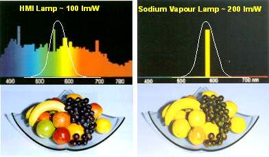 left, still offers high luminous efficacy, but about only half compared to the Sodium vapor lamp.